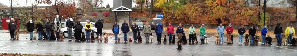 A nice long “Sit/Stay” and one “Down/Stay” with most of the owners out of site. |